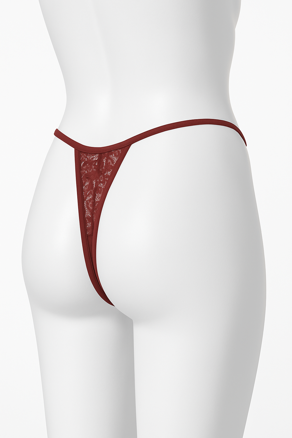Experience the Perfect Blend in a Red Thong G-String: Delicate Lace Meets Soft Cotton